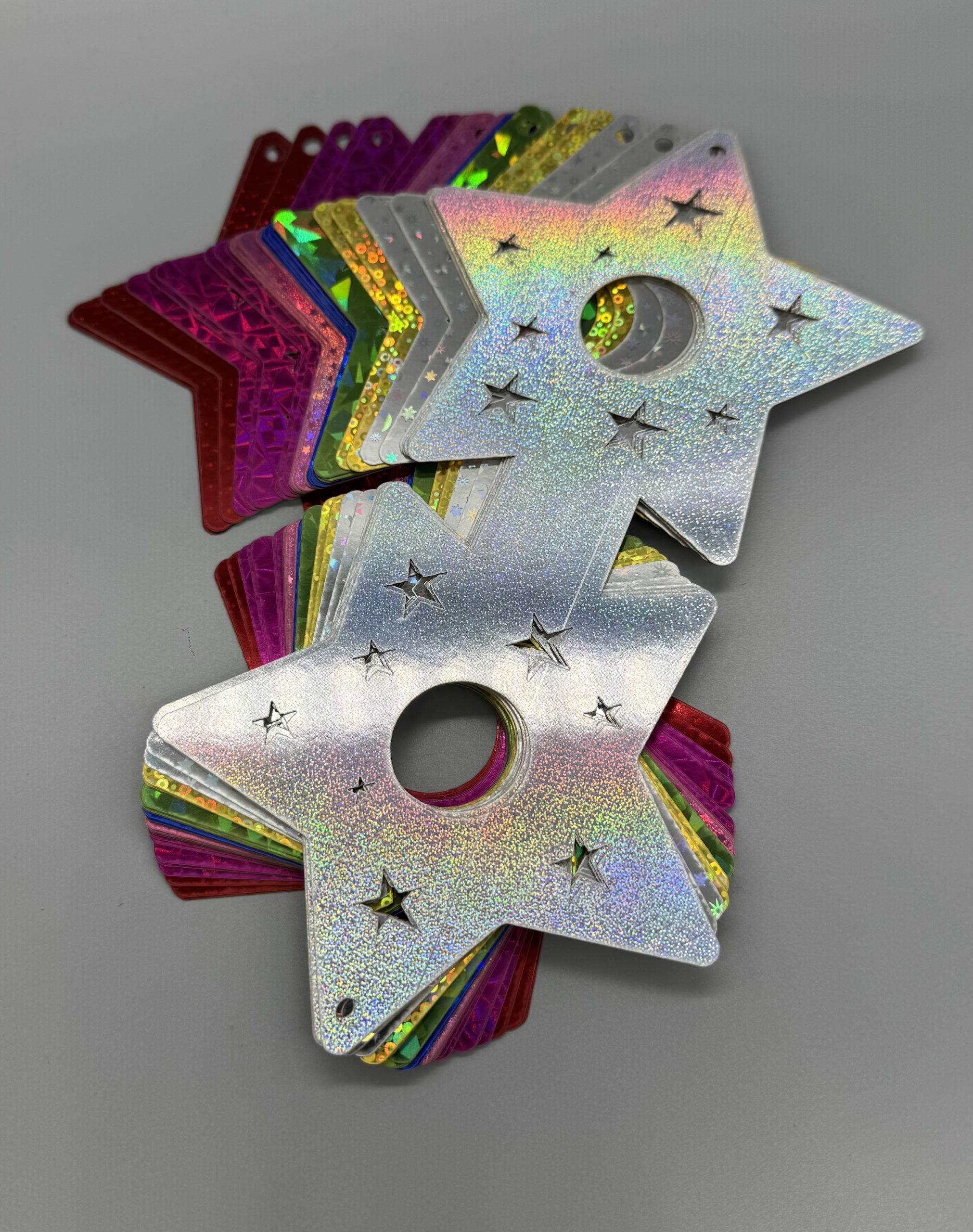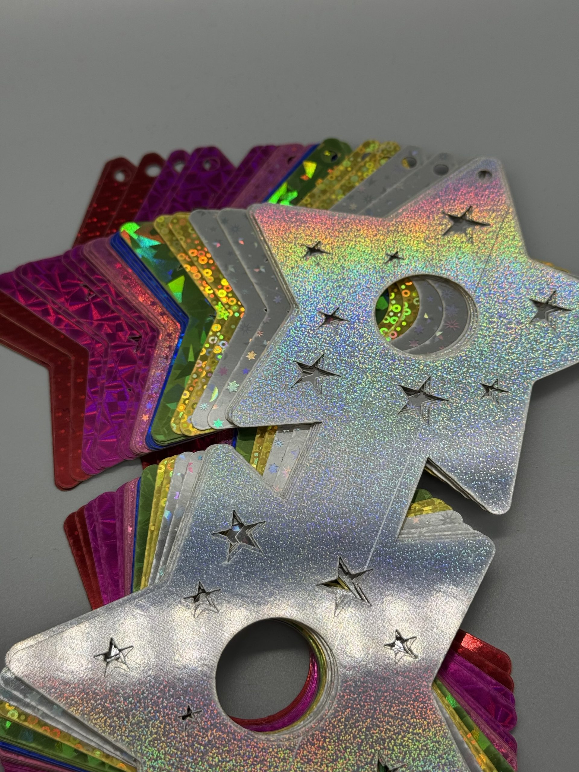 Material: glänzendes Hologramm-Papier in verschiedenen Farben