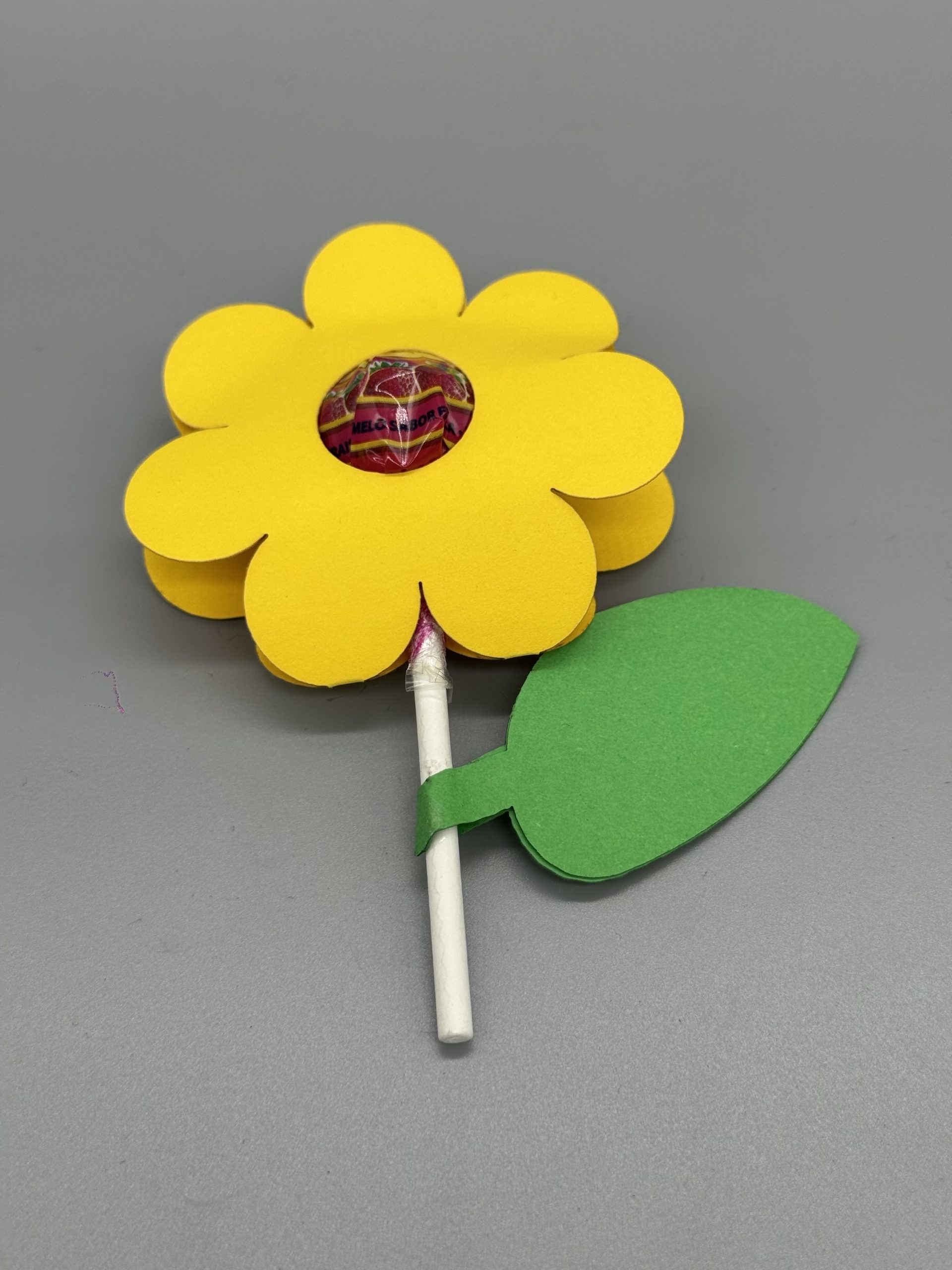 Jedes Set besteht aus einer ausgeschnittenen Papierblume mit passendem Blatt, bereit zum Zusammenstecken mit deinem Lieblings-Lutscher (z. B. Chupa Chups oder ähnliche Größe).