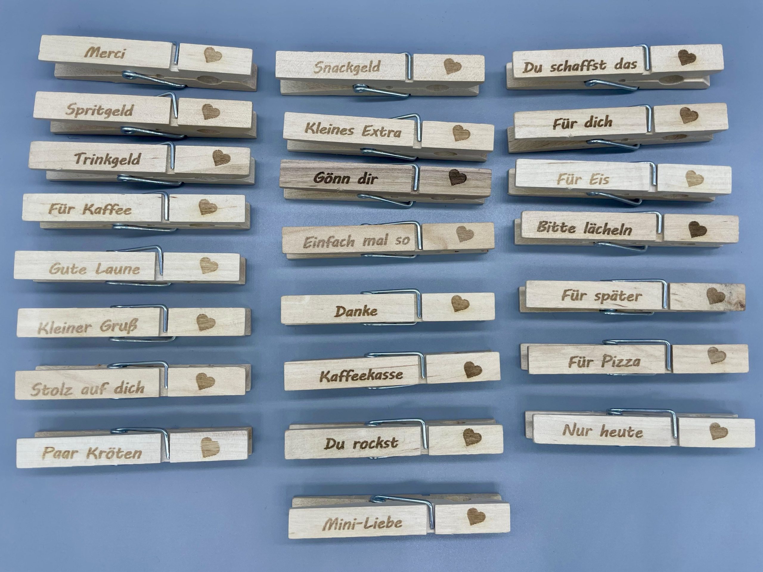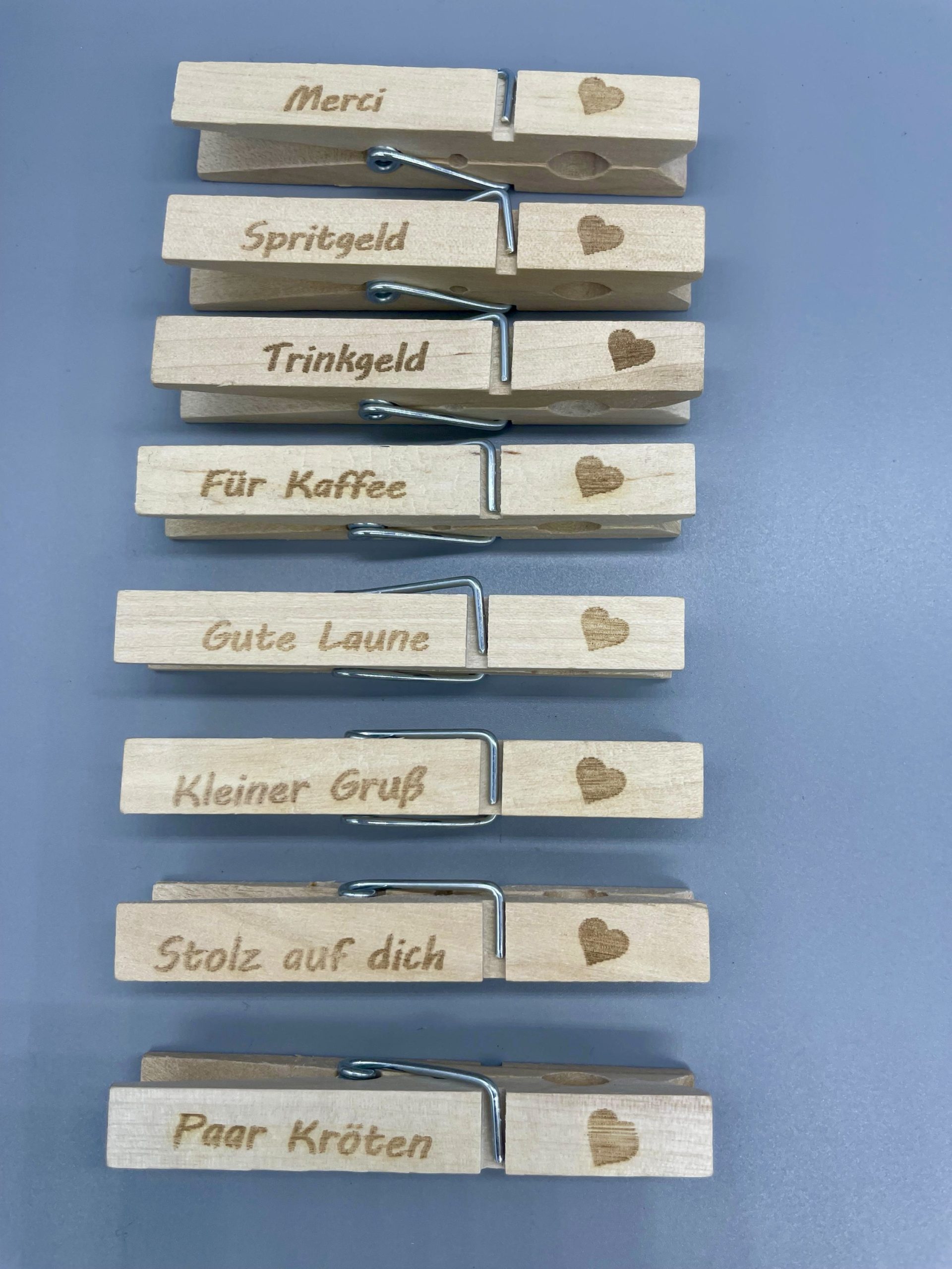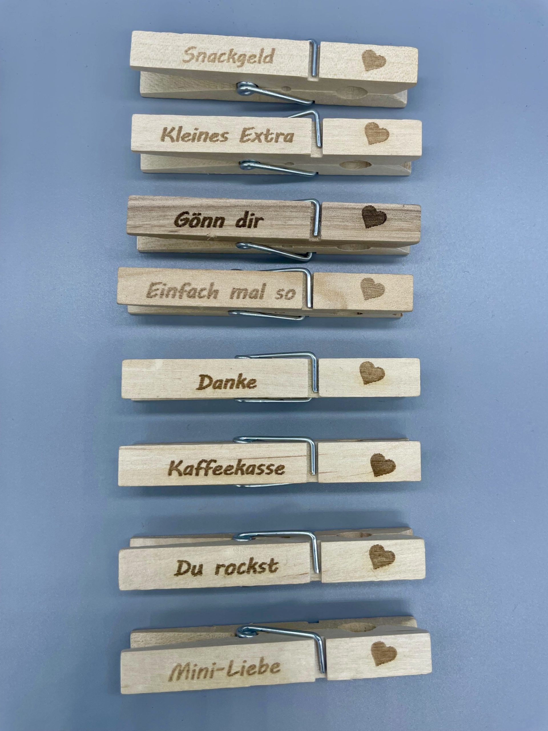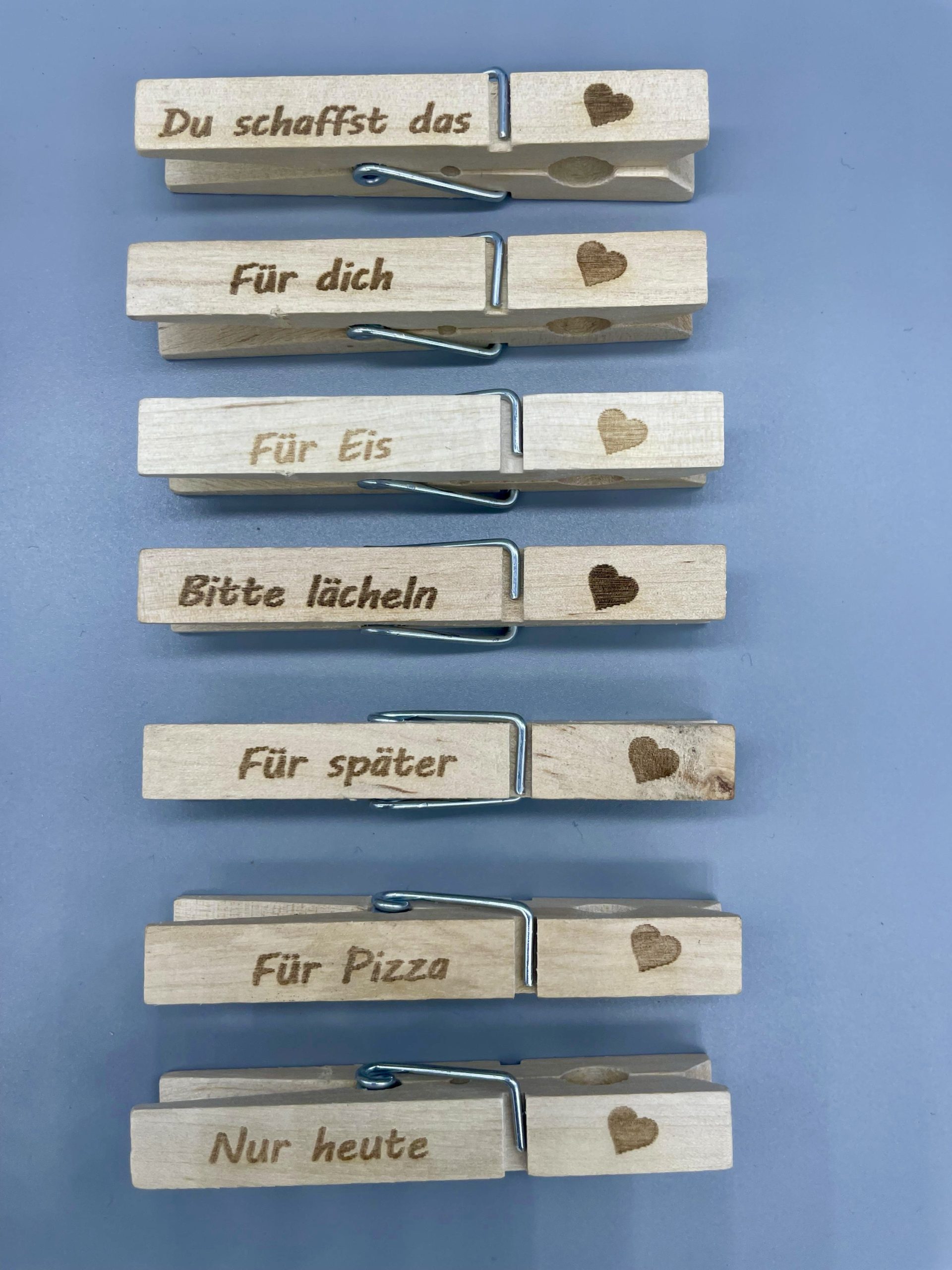 Diese Wäscheklammern mit Gravur sind mehr als nur praktische Helfer – sie sind kleine Botschafter voller Herz.